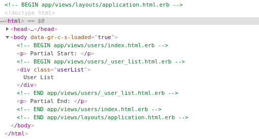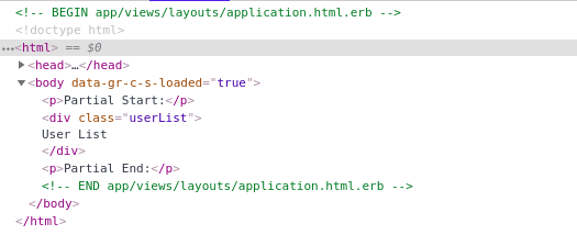 In the above example, we have used HAML templates for all files except for application.html.erb. Here we can see that the name of application.html.erb file is shown as a comment, but there are no comments for other files.