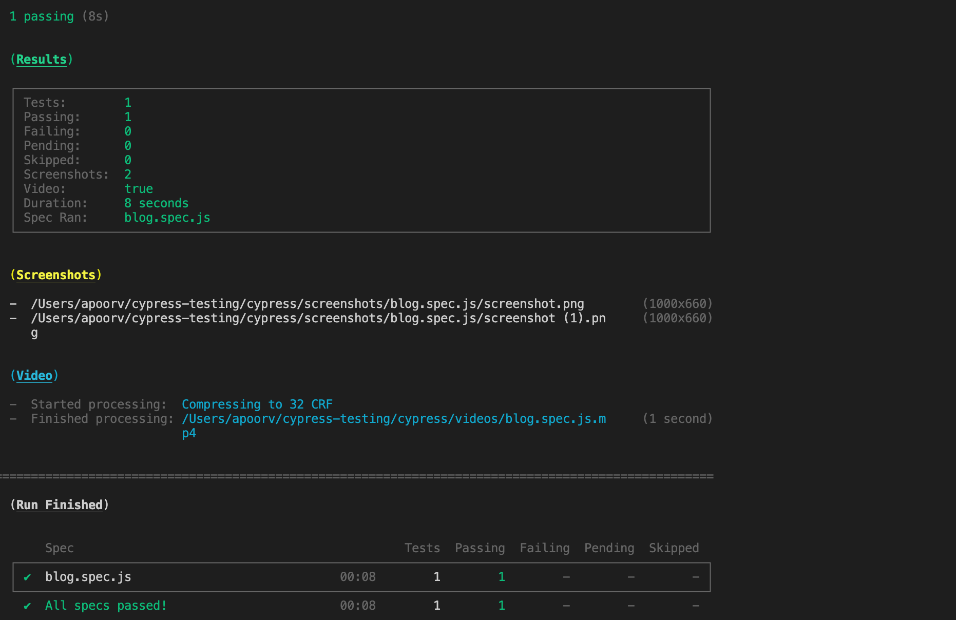 a test case when running via cypress run.